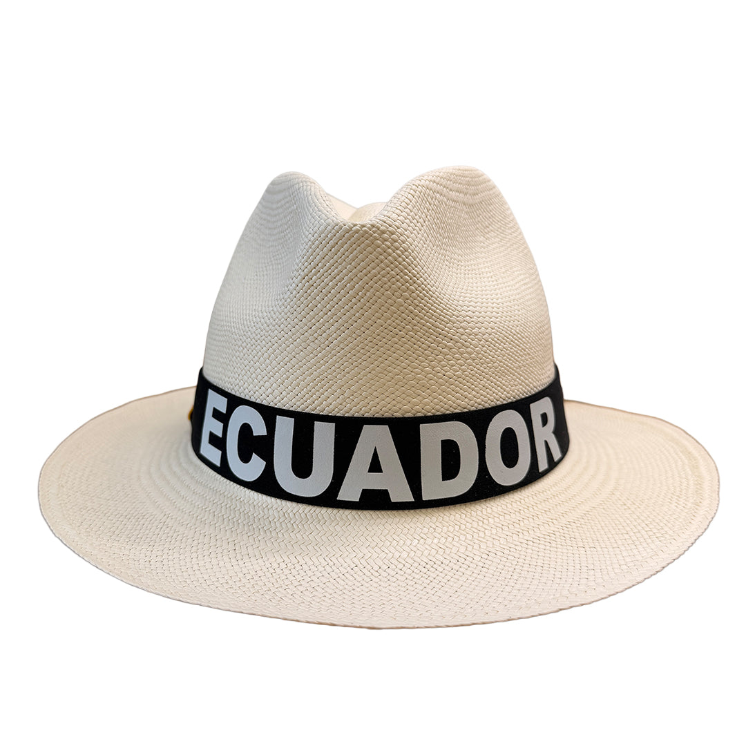 Herencia Artesanal: Incluye una cinta negra elegante con el nombre "ECUADOR" y un detalle tricolor (Amarillo, Azul y Rojo) cosido a mano.